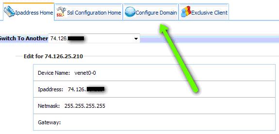 - Chỉ định tên miền mà bạn muốn cấu hình một địa IP dành riêng (xem hướng dẫn ở trên)